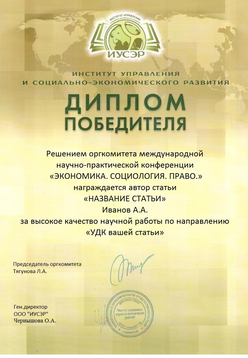 • Диплом, стоимостью 200 рублей в электронном виде ОБРАЗЕЦ